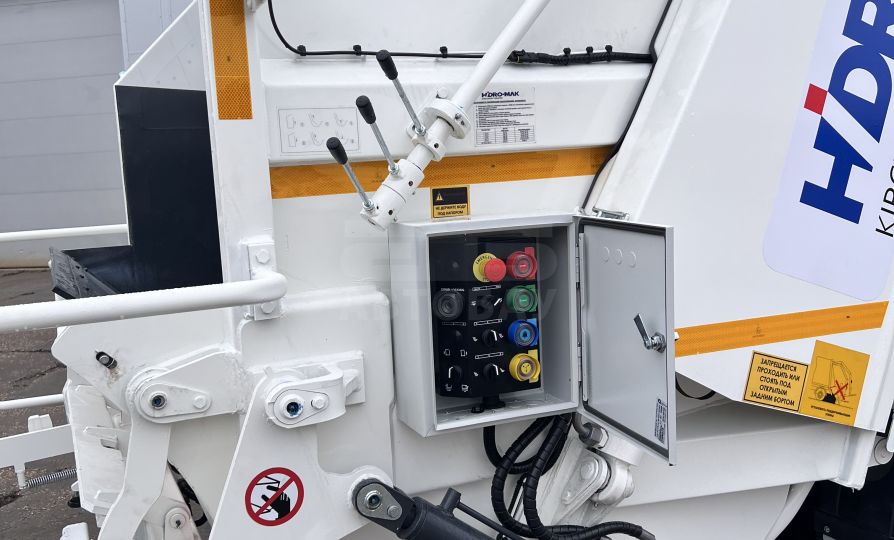 Основной бункер разгружается выталкивающей плитой после поднятия заднего борта. Операция осуществляется при помощи рычагов расположенных за кабиной. В процессе разгрузки применяются кнопка «подгазовки» и кнопка «одиночного цикла», необходимая для разгрузки мусора из загрузочного бункера при поднятом загрузочном бункере.